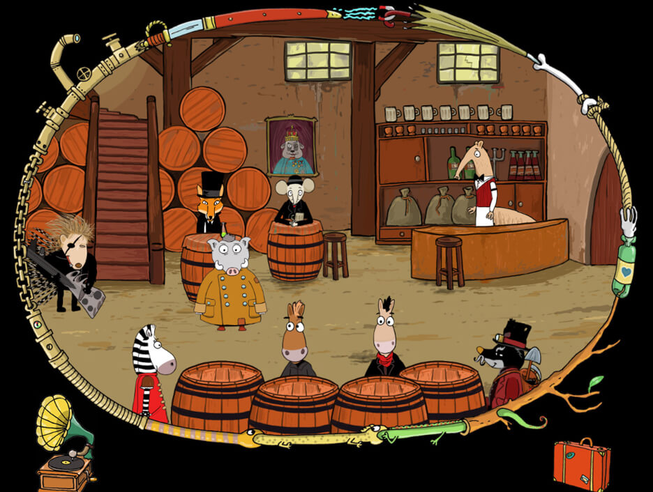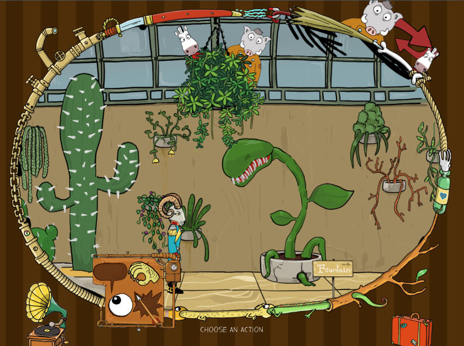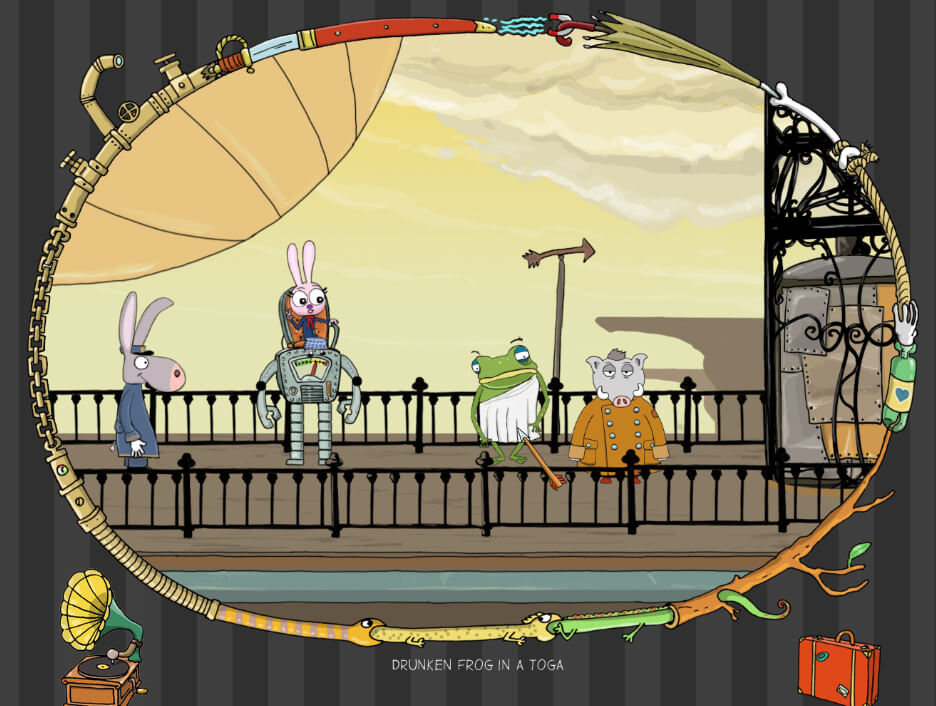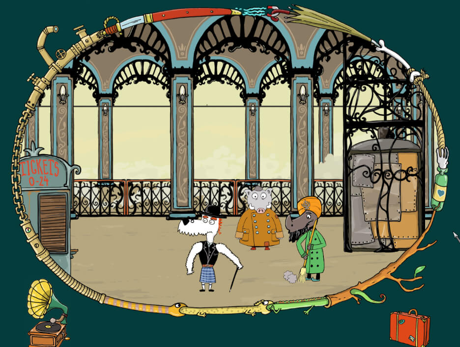 "Viktor, a Steampunk Adventure" is a beautiful 2D point and click adventure game set in a cartoonish early 20th century. The story follows Viktor, a wild boar who tries to cope with the loss of his job by going on a quest to become a new Emperor of Austria-Hungary.